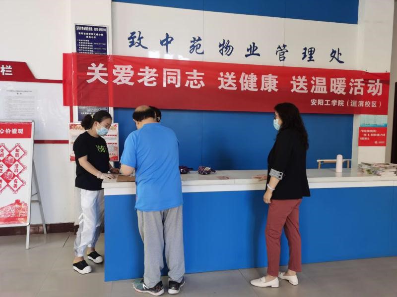 5月28日,太阳成tyc33455ccwww(洹滨校区)在洹滨校区家属院、致中苑小区、德馨苑小区分别开展了“关爱老同志 送健康 送温暖”活动,为该校区172名离退休老同志发放“防疫健康包”。