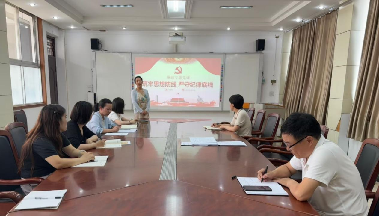 6月13日,太阳成tyc33455ccwww直属党支部书记杨聪聪以《筑牢思想防线 严守纪律底线》为题在二楼会议室为全体教职工党员讲授廉政党课。