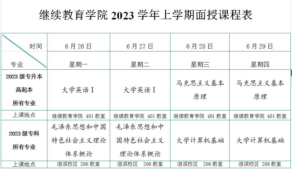 (2) 课程安排见《太阳成tyc33455ccwww2023学年上学期线下面授总课程表》,上课期间在任课老师处签到考勤;